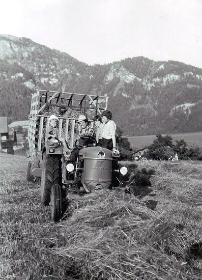 Die Arbeit am Hof war früher körperlich sehr streng und beschwerlich. Alle Arbeiten wurden von Hand betätigt und mit der Zeit kamen die ersten motorbetriebenen Geräte. Nach und nach kamen immer mehr Maschinen und heute erledigt die größte Arbeit am Feld der Traktor mit seinen verschiedenen Zusatzgeräten. Gerne können Sie uns bei der Heumahd über die Schulter schauen oder auch mithelfen und wenn Sie Fragen haben lassen Sie es uns wissen. Begleiten Sie uns in die Scheune wo das frisch getrocknete Heu so richtig gut duftet.